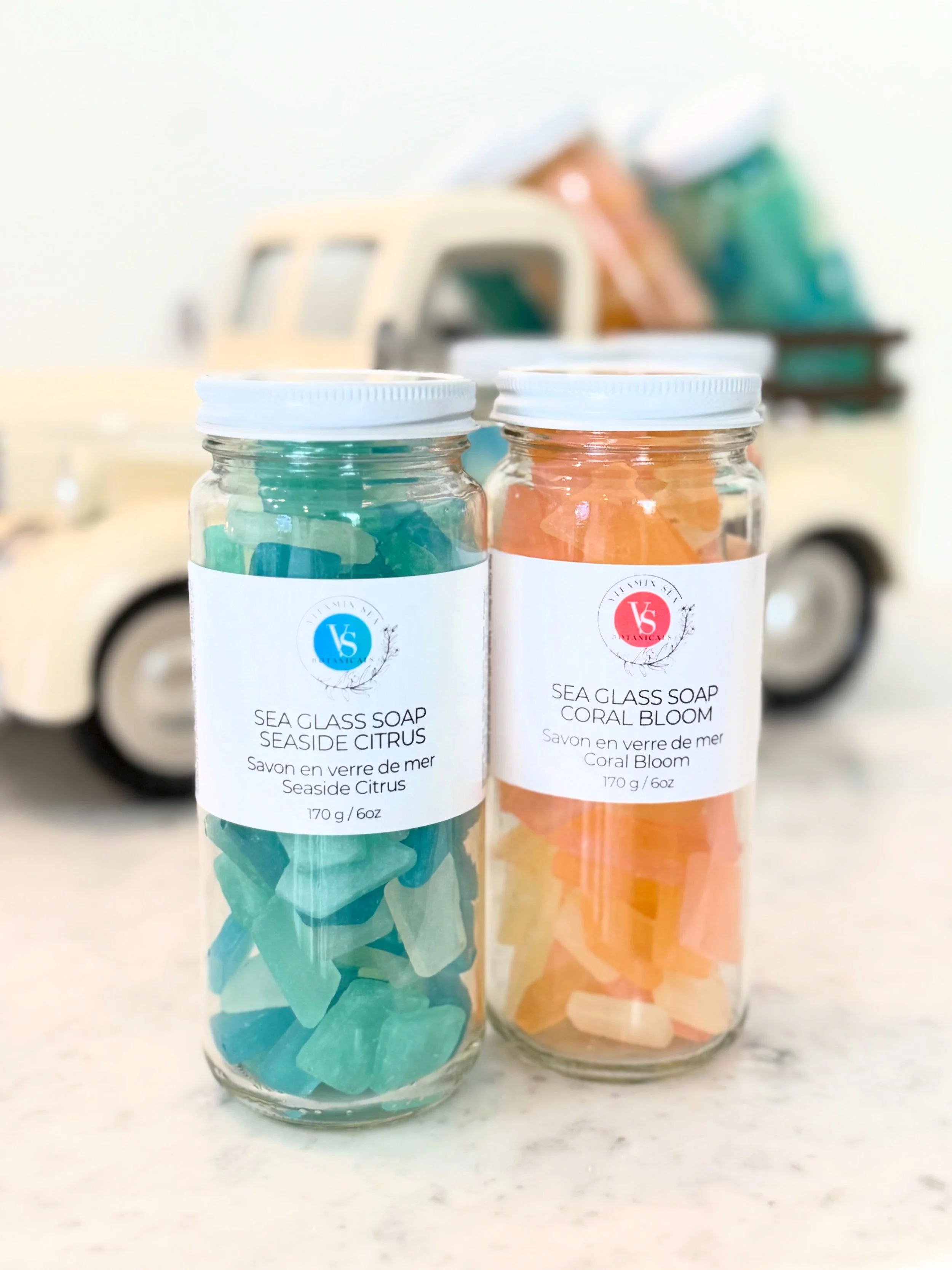 Inspired by ocean-tumbled sea glass, this gentle, moisturizing soap lathers beautifully while keeping skin soft and hydrated. Available in Coral Bloom (floral ylang ylang, tangerine, and bergamot) and Seaside Citrus (zesty lemongrass, litsea, and lavender).